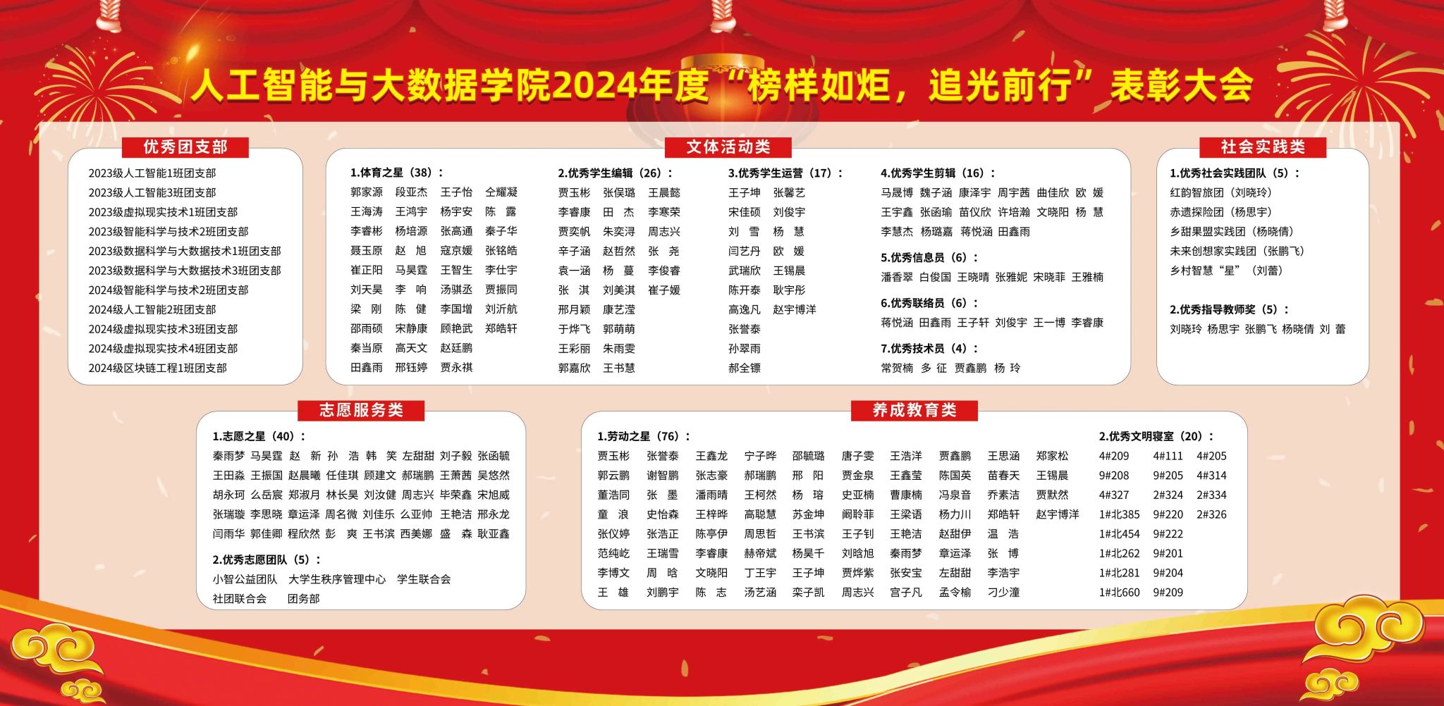 为全面总结beat3652024年度学生工作,表彰先进、树立典型,营造积极向上、开拓进取的校园文化氛围,现将2024年度“榜样如炬,追光前行”优秀学生及社团予以表彰。名单如下: