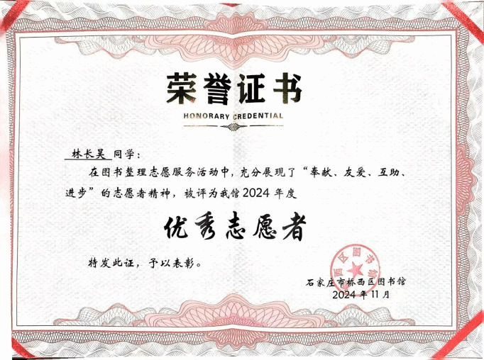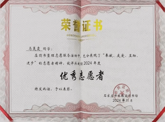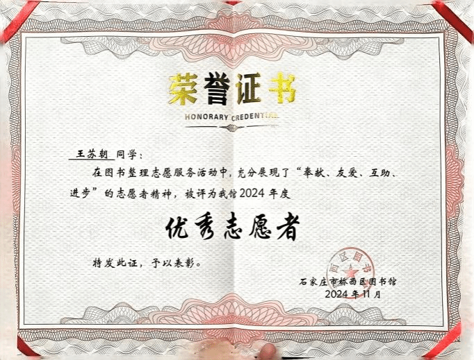 在简洁而庄重的仪式上,图书馆馆长发表了真挚的致辞,赞扬志愿者们的无私付出,称他们是图书馆不可或缺的助力,也是社区文化建设的积极因子。此次桥西区图书馆对beat365青年志愿者代表颁发证书,不仅是对学院青年志愿者们公益行为的肯定和鼓励,更是对学院青年学子的一种激励和引领。