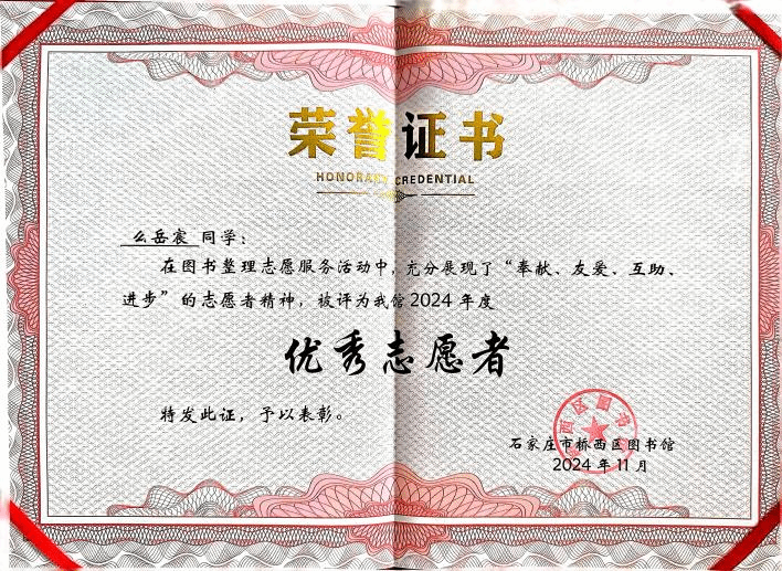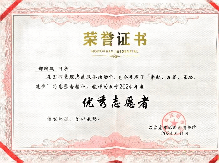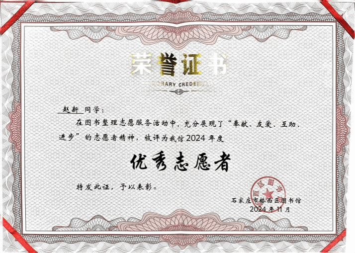 近日桥西区图书馆举行了青年志愿者证书颁发活动,对beat365亚洲版官网青年志愿者们积极参与公益活动的热情和奉献精神表示了由衷的感谢与表彰。