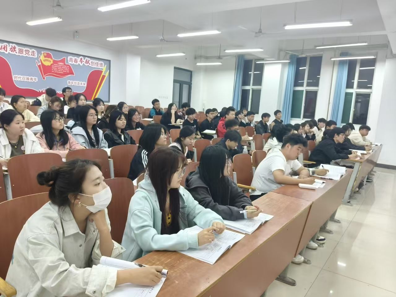 培训现场秩序井然,学员们认真聆听、专注记录,展现出浓厚的求知欲和积极的学习态度。在互动环节,学员们踊跃发言,结合自身实际分享对全会精神的理解与感悟,思维的火花在交流中不断碰撞。大家一致表示,要将全会精神内化于心、外化于行,在学习和生活中积极履行青年的责任与担当。辅导员监督员们认真履行职责,协助组织活动,确保培训顺利进行。