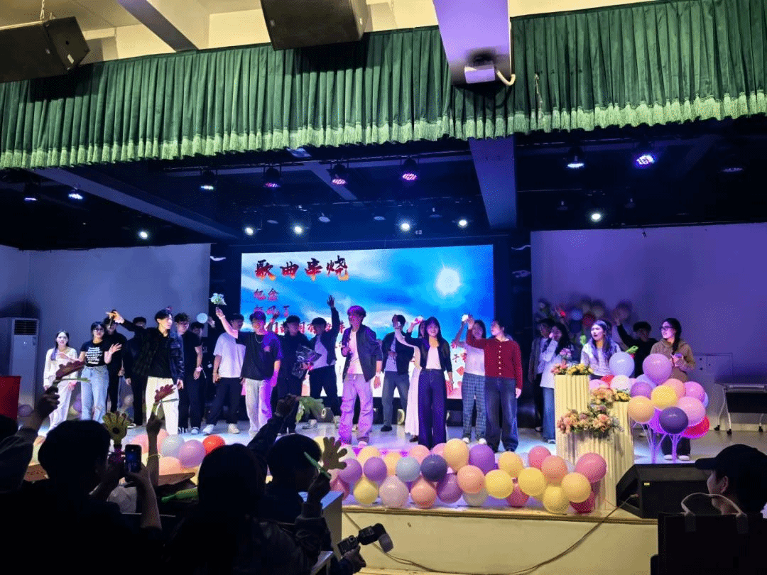 歌曲串烧表演:22级全体团支部书记与社团留职人员共同演绎了歌曲串烧,他们以动人的歌声串联起一首首经典曲目,唤起了观众对往昔岁月的回忆,展现了青春特有的活力与激情。