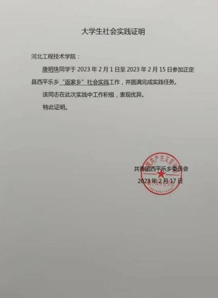 正所谓“纸上得来终觉浅”、“读万卷书不如行万里路”,社会实践对于大学生来说是培养自己处事能力和实践能力的重要方式,极具重要意义。为此,beat365亚洲版官网22级区块链三班康明珠在正定县西平乐乡积极参加了社会实践活动。