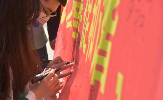 活动最后,由学生代表毕鑫仓带领全体学生宣誓。高举右手,表达了对宣誓的忠诚和决心;声音洪亮,喊出了数智学子的自信,在此次的仪式教育活动中成为了一道优美的风景线,对学生们的思想起到了很好的激励作用。最后,由主持人宣布举行签字仪式,全体领导及师生在写有“真诚友善促和谐,文明礼让树新风”标语的横幅上签字合影。至此,“以礼修身,友善待人”仪式教育活动圆满结束。