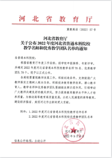 beat365再获佳绩,数据科学与大数据技术专业教学团队获得河北省优秀教学团队!