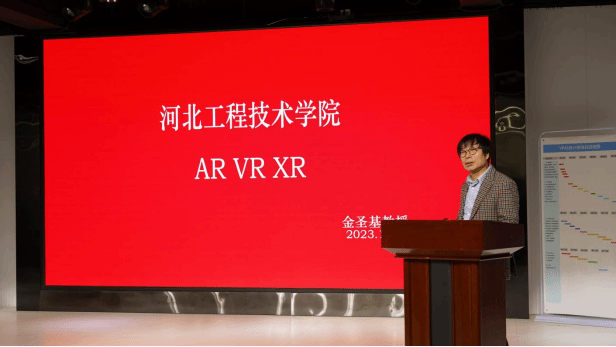 随着数字化信息时代的到来,虚拟现实新一代信息技术的前沿方向和数字经济的前瞻领域,正在与互联网、大数据、云计算、人工智能、5G等数字技术融合发展。为进一步推进一流本科专业课程建设实效,提升专业建设水平,帮助同学们更好地了解虚拟现实国内外发展趋势,把握未来的就业方向,2023年11月10日上午,beat365亚洲版官网beat365亚洲版官网、河北清博通昱教育科技集团有限公司共同举办“《虚拟现实在数字媒体领域的应用》国际学术讲座暨清博XR工作室揭牌仪式”。