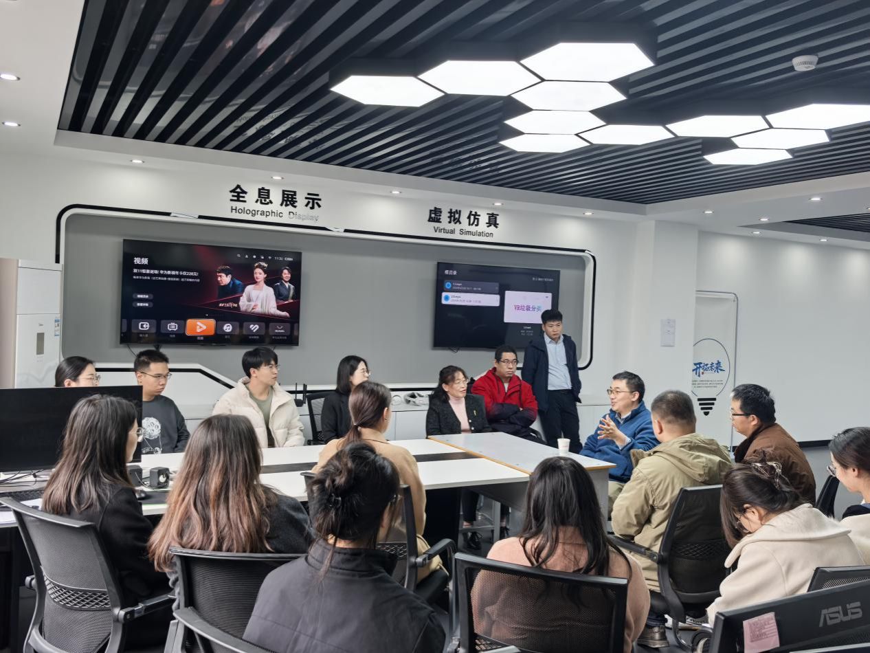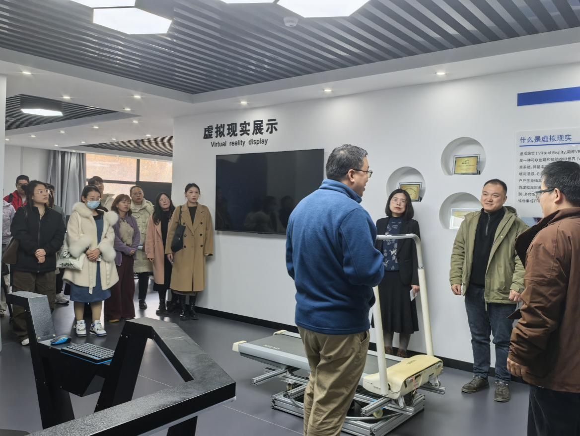 首先邀请罗训教授参观了我们的虚拟现实技术专业实验室,实验室开发的新型技术得到了罗训教授的高度好评,肯定了虚拟现实技术的优点并在此基础上鼓励老师积极申报专利,以及就如何带学生参加比赛进行了深入讲解。罗训教授肯定了学校扎实可靠的基础设施、技术和应用支撑。教师应该利用好数字技术这些支撑和手段提高自己的专业能力。