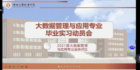 为进一步推进2025届毕业生实习工作,解决毕业实习中存在的实际问题,1月2日,2021级大数据管理与应用班召开了毕业实习动员会。本次会议通过线上腾讯会议平台举行,由数管系主任薛少童主持,各实习指导老师以及2025届全体数管毕业生参会。