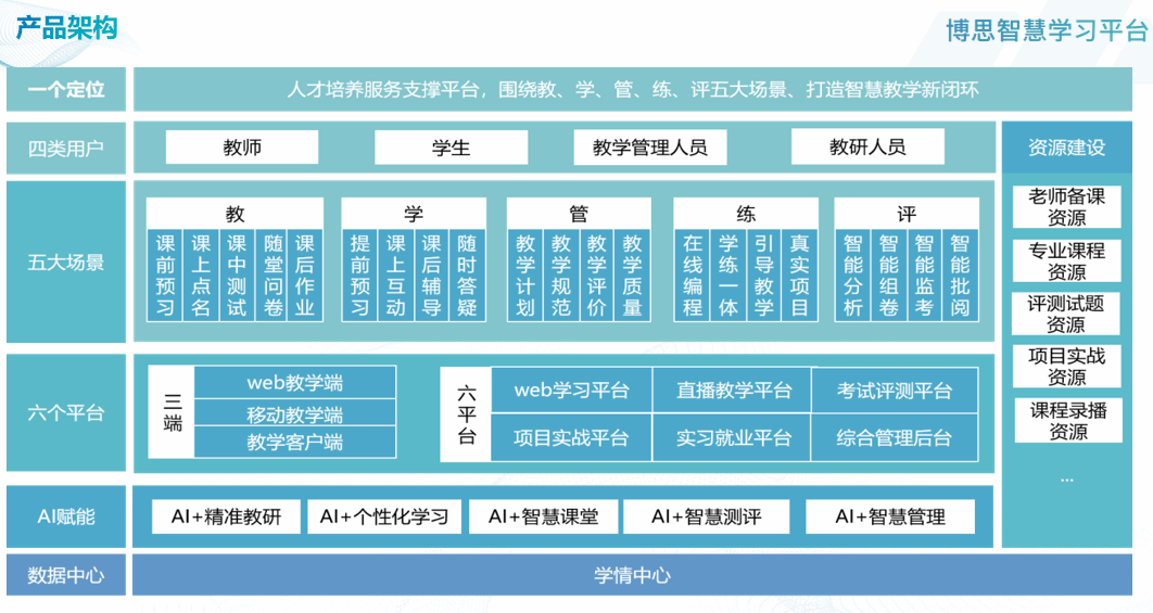 beat365亚洲版官网与科大讯飞两大资源平台,实时关注最新技术动向和需求,随时跟进课程设计内容,及时更新课程模块,保证课程的适用性、前瞻性、先进性和实用性。共同围绕“教、学、管、练、测”全生命周期教学场景,实现个性化学习,精准化教学,智慧化管理,打造全新的智慧教学生态闭环。